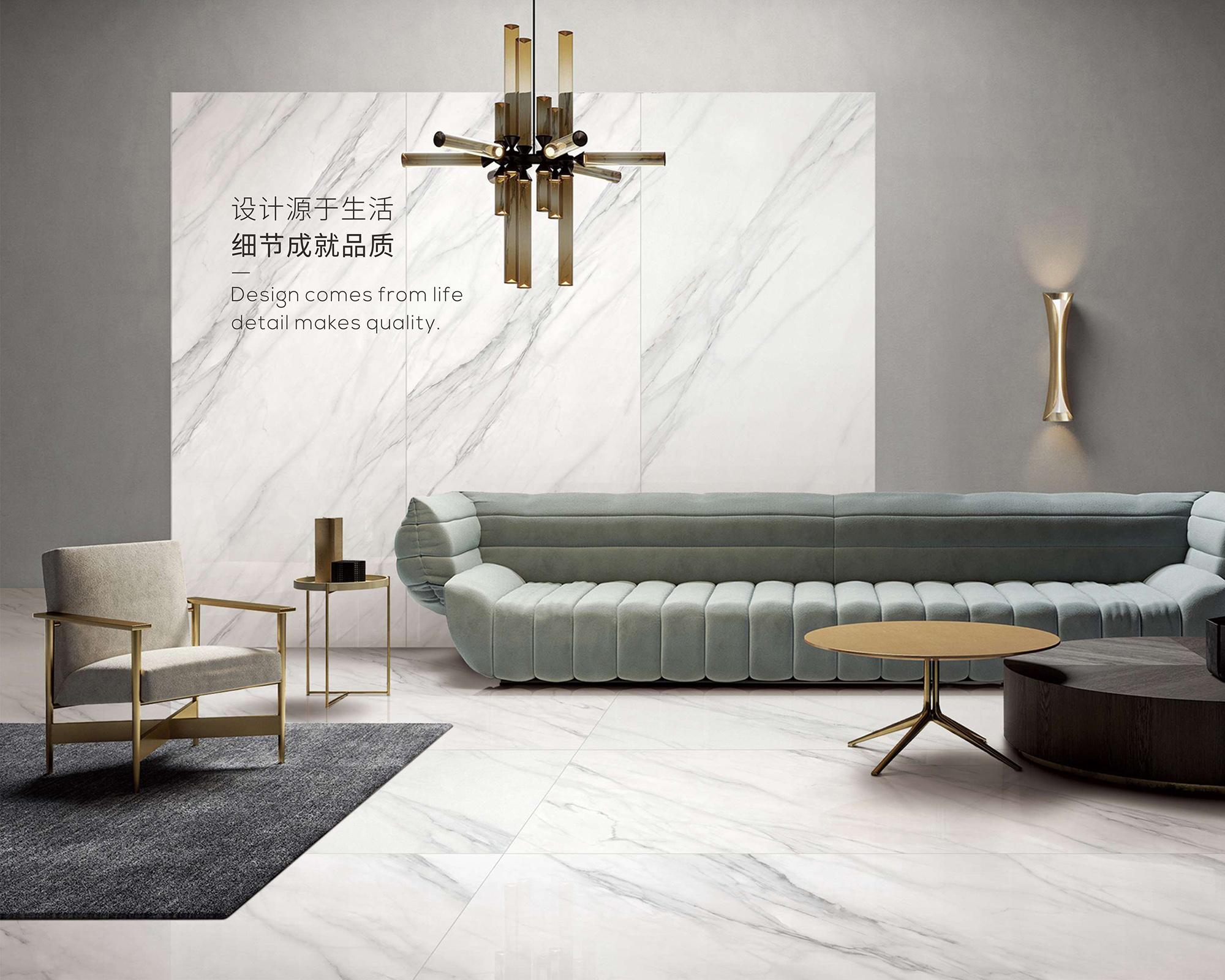?還原珍稀石材原生之美  ?50°高端超白坯  ?80°舒適亮光